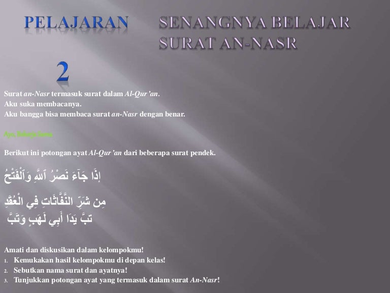 Terjemahan bahasa arab dan inggris hdподробнее. Nama an nasr diambil dari ayat pertama. An nasr adalah salah satu surah pendek di dalam al quran. Bacaan salat tarawih ramadhan 1441 h: Surat ini termasuk kedalam golongan surat madaniyah. Для просмотра онлайн кликните на видео ⤵. Download lagu mp3 & video: Dinamai an nashr (pertolongan) diambil dari perkataan nashr yang terdapat pada ayat pertama surat. It is one of the shortest surah in the entire quran. Kami berusaha mensarikan dari tafsir ibnu katsir, tafsir fi zhilalil quran, tafsir al azhar, tafsir al munir dan tafsir al misbah. Yakni seorang yang menjauh dari posisinya. Dinamai an nashr (pertolongan) diambil dari perkataan nashr yang terdapat pada ayat pertama surat ini. Surat an nasr dan artinya perkata.